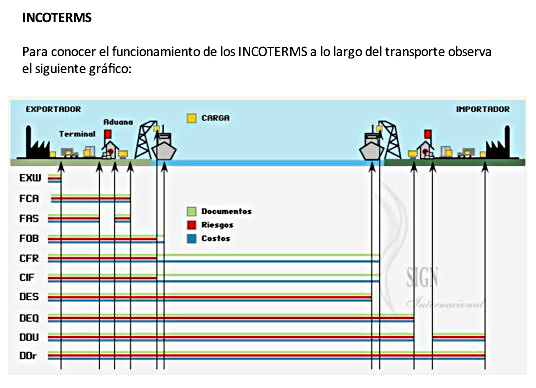 Los INCOTERMS (International Chamber of Commerce Trade Terms) son una serie de cláusulas estándar que se insertan en los contratos de compraventa internacional, con el fin de fijar las obligaciones de cada una de las partes y el reparto de gastos inherente a las mismas, así como el momento de transmisión del riesgo.
